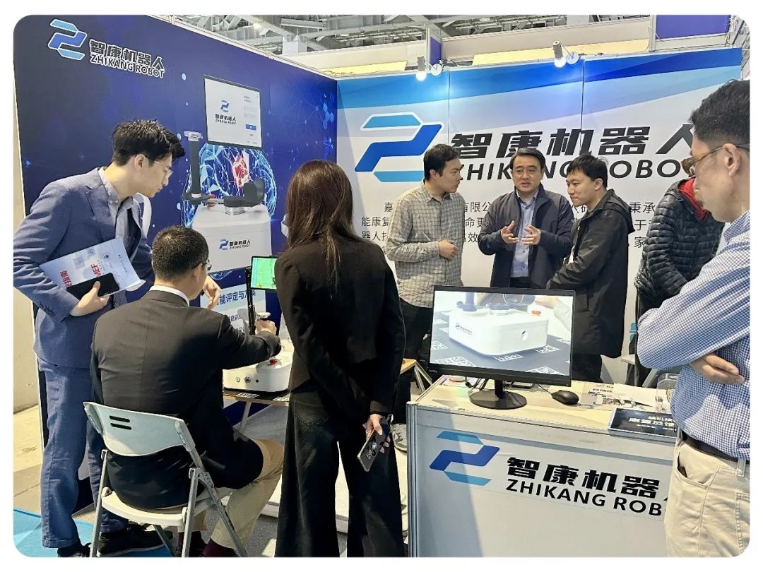 机器人平台孵化企业——智康机器人公司的全周期多场景上肢康复机器人被评为CMEF康养机器人优选产品,上海交大医学院康复星空官网单春雷院长与太平洋保险一行,好博医疗,招商集团,光大特斯联,上海电信等公司的众多业界领军人物纷纷莅临展台交流体验。
