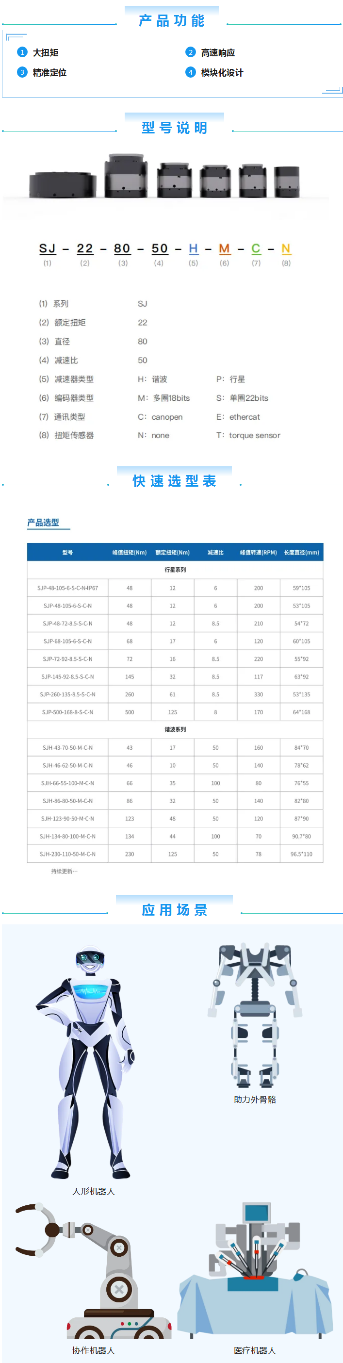 SRI-SJ机器人一体化关节模组是由星空官网(中国)机器人有限公司官网采用模块化设计、核心零部件自主研发的。攻克扭矩力控技术、非线性摩擦力辨识、实时电机内阻检测、高精度力控采样、外部负载惯量辨识等核心技术,精心打造多模块化、低成本、轻量化的关节模组。经济实用,可广泛应用于各种商业服务定制化场景。