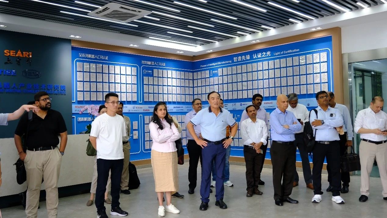 7月24日,印度塔塔集团(Tata Group)代表团一行到访星空官网(中国)机器人有限公司官网(以下简称”上研院“),实地参观机器人检测试验室、智能创新研发实验室、具身智能机器人数据训练测评试验室,重点了解国家机器人检测与评定中心(总部)职能、行业标准制定与检测认证服务等工作进展,并就中国机器人认证(以下简称”CR认证”)体系及国际互认机制展开深入交流,上研院副院长周梅杰热情接待。