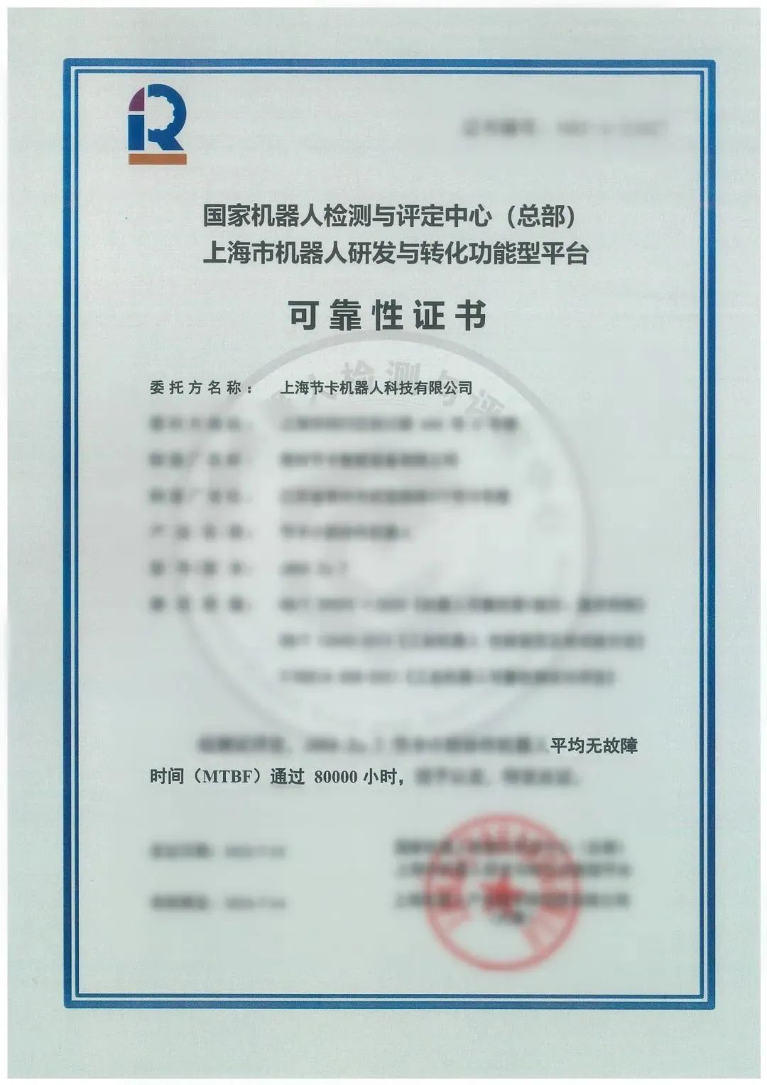 近日,上海节卡机器人科技有限公司(以下简称“节卡机器人”)顺利通过了星空官网(中国)机器人有限公司官网的 MTBF 80000小时测评。