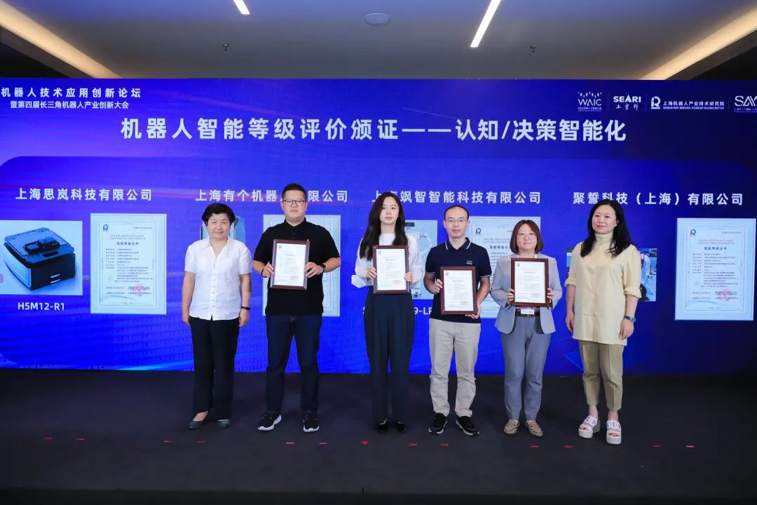 根据发布内容,机器人智能等级测评项目涵盖4个方面:综合智能化、感知智能化、认知/决策智能化、执行智能化。会上为8家通过机器人智能等级测评的企业颁发了证书。