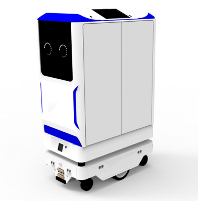 标本运输机器人单门容积为40L,共120L,最大载重30kg,最高运输速度2.0m/s。 主要用于运输各类小件物资,如标本、药品、报告、个人配餐、消耗品等。